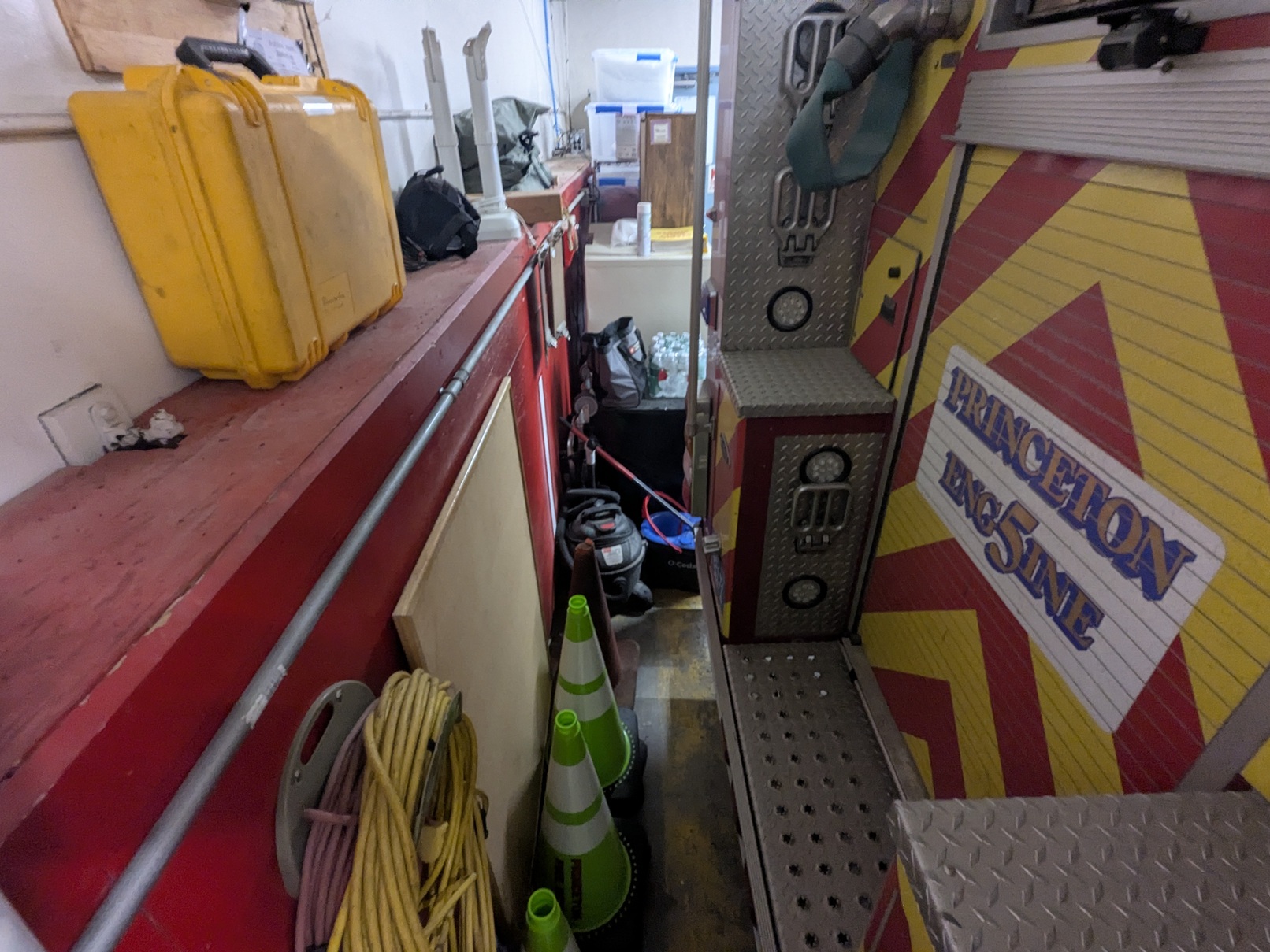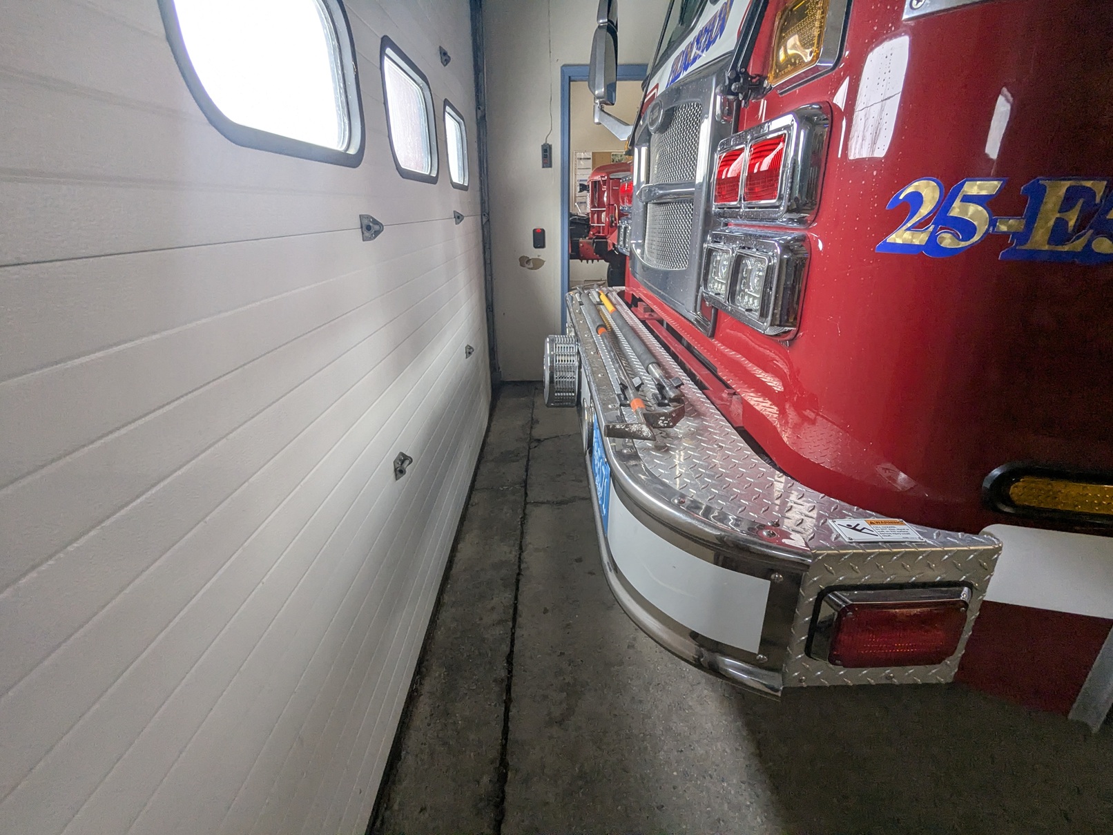 The average firefighter in full gear cannot get to the fire truck's side doors. They must open the bay door, pull the truck out, close the bay door, and THEN access the other side.