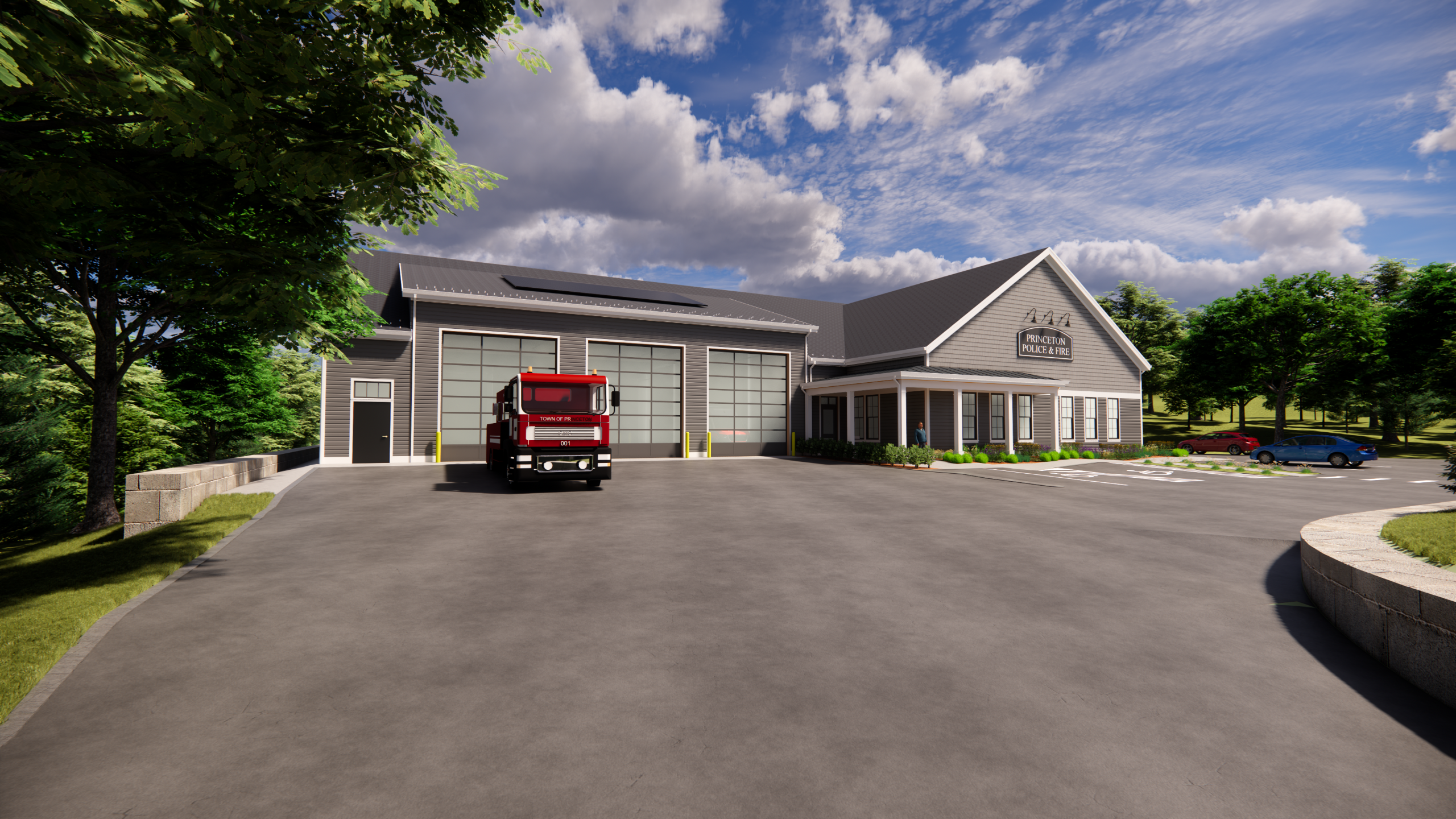 Renderings of the New Public Safety Building with Site Plans.
